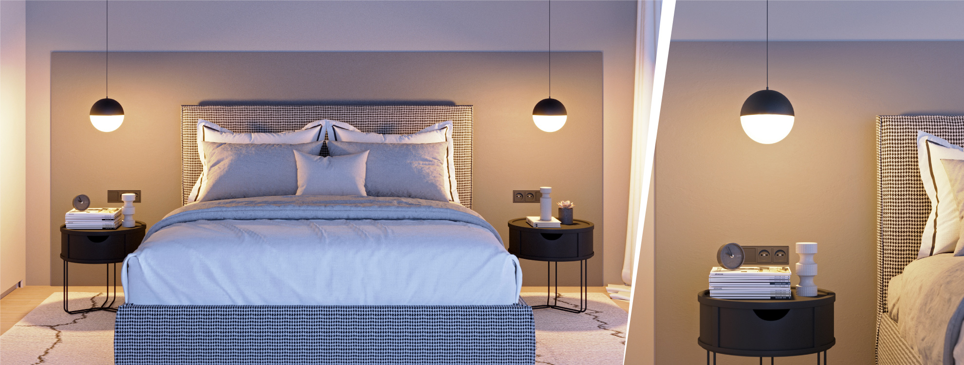 Черные, белые и золотистые корпуса на регулируемом подвесе длиной 1500 мм.