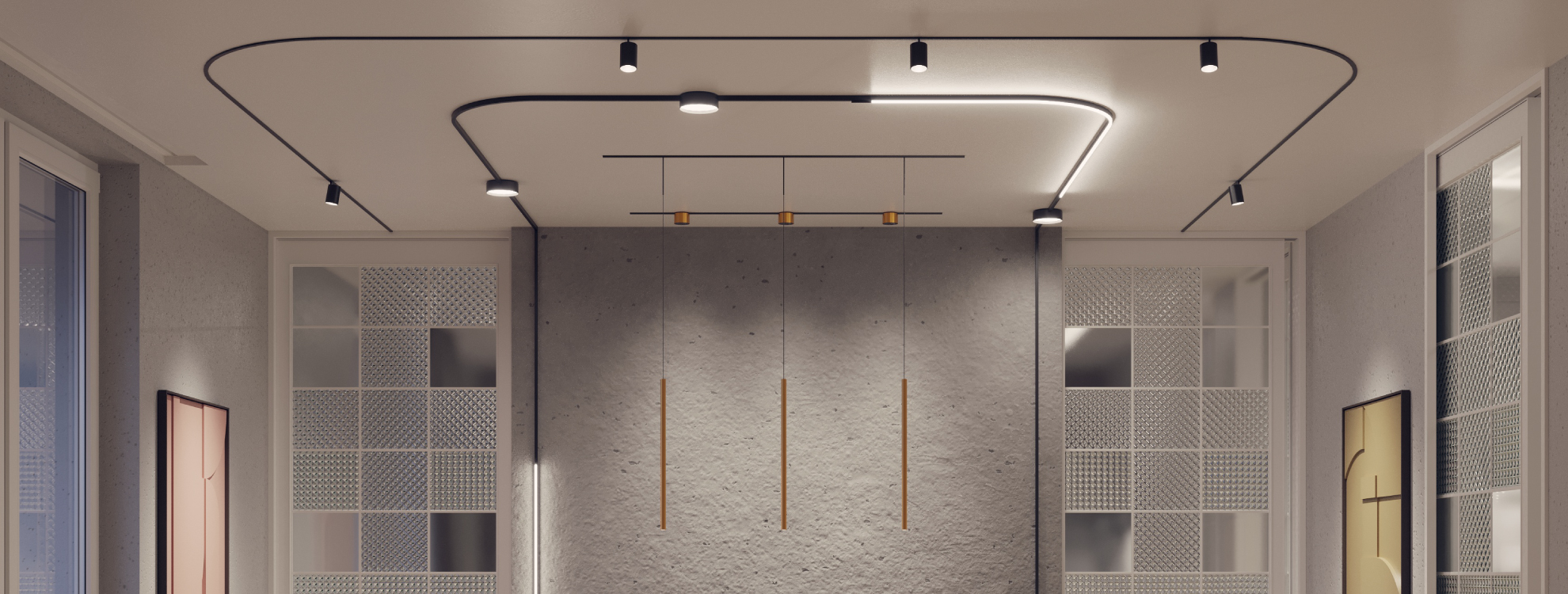 Безопасное напряжение питания 24 В позволяет перемещать светильники вдоль шинопровода и устанавливать их в пределах досягаемости.