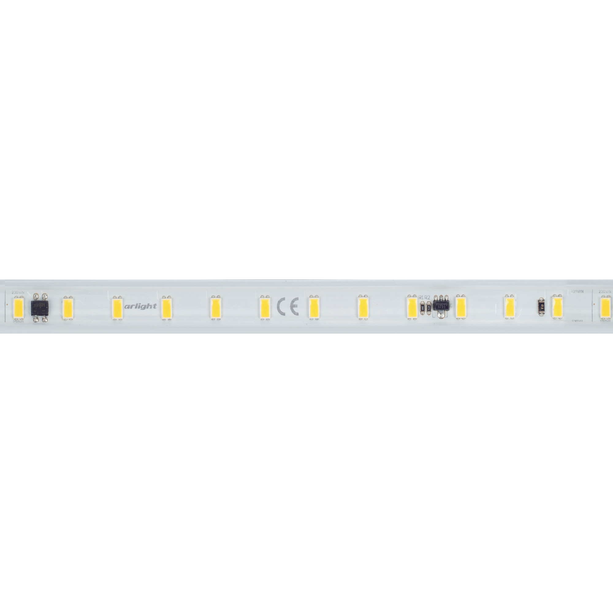 Светодиодная герметичная лента ARL серии C72 шириной 15.5 мм, мощностью 14 Вт/м, степень защиты IP65, в прозрачной ПВХ-трубке, оболочка ленты имеет защиту от УФ излучения, что позволяет использовать ее на улице. Светодиоды SMD 5630, 72 шт/м, холодного цвета свечения (10000K). Индекс цветопередачи CRI>80. Лента подключается напрямую к сети переменного тока 230 В и не требует использования источников питания. Использование интегральных стабилизаторов тока позволяет подключать ленту длиной до 50м, обеспечивая при этом равномерную яркость свечения по всей длине ленты. При подключении нескольких лент, подавать питание на каждые 50м отдельным кабелем. Запрещается последовательное подключение лент более 50м. Предназначена для декоративной подсветки на улице и в помещениях, создания контуров рекламных объектов, подсветки потолочных ниш. На лентах установлены микросхемы с функцией снижения тока для защиты ленты от перегрева, что обеспечивает надежную работу лент в различных условиях. Диммирование осуществляется диммерами TRIAC в диапазоне 15%-90%. Крепление с помощью скоб, аксессуары для монтажа и подключения поставляются отдельно. Катушка 50 м. Поставка под заказ от 100 м.