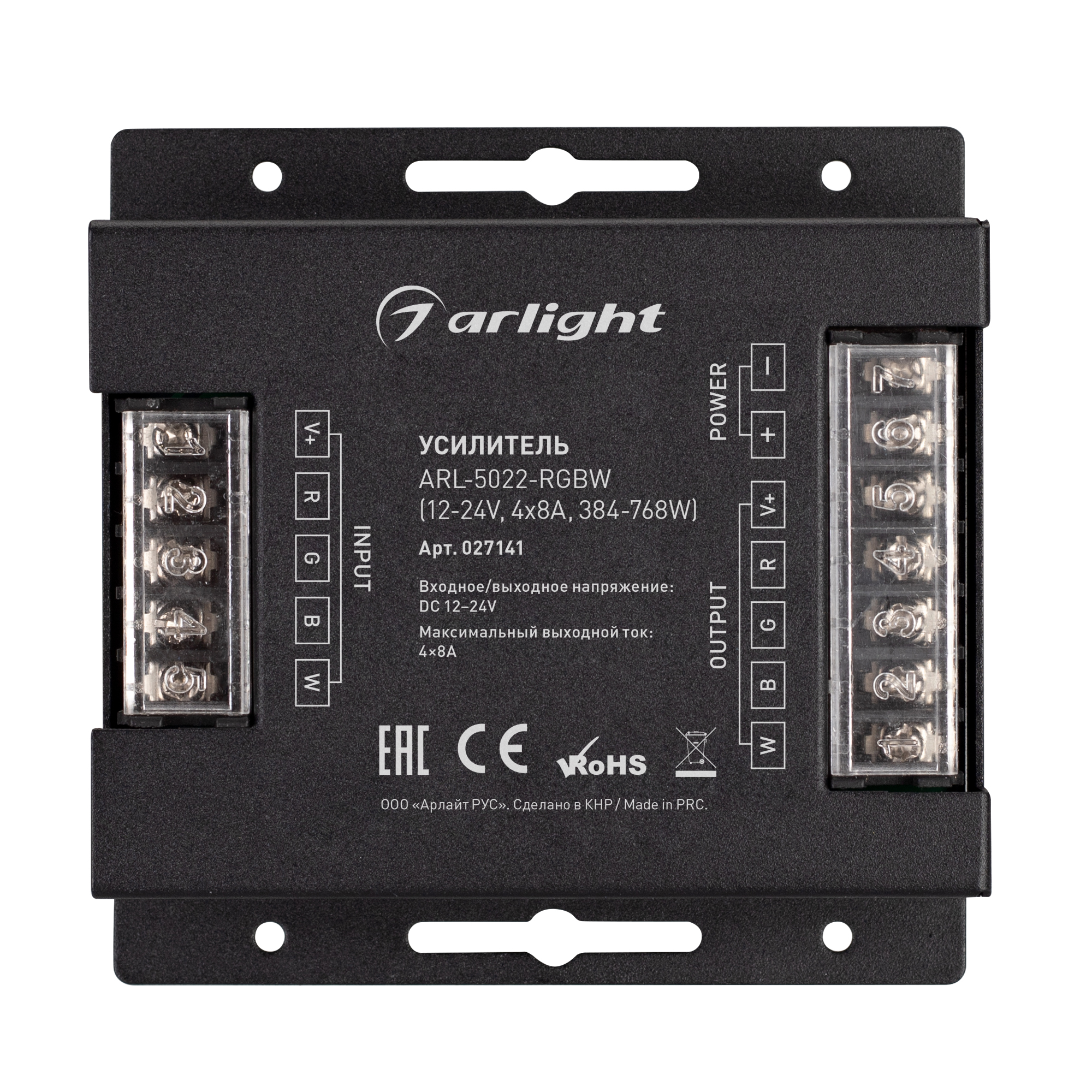 Усилитель ARL-5022-RGBW (12-24V, 4x8A, 384-768W) (Arlight, IP20 Металл, 3 года)