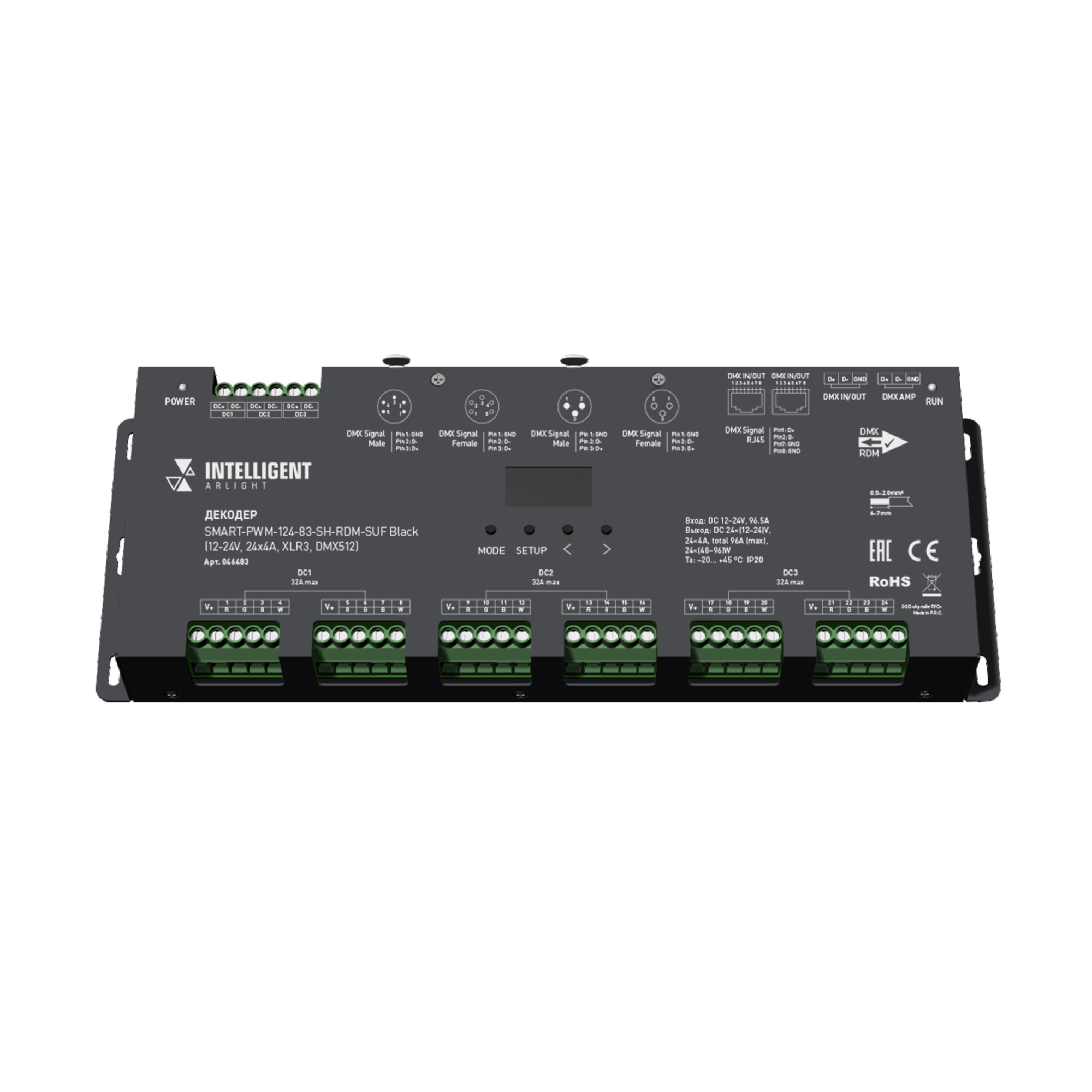 INTELLIGENT ARLIGHT Декодер SMART-PWM-124-83-SH-RDM-SUF Black (12-24V, 24x4A, XLR3, DMX512) (Arlight, IP20 Металл, 5 лет)