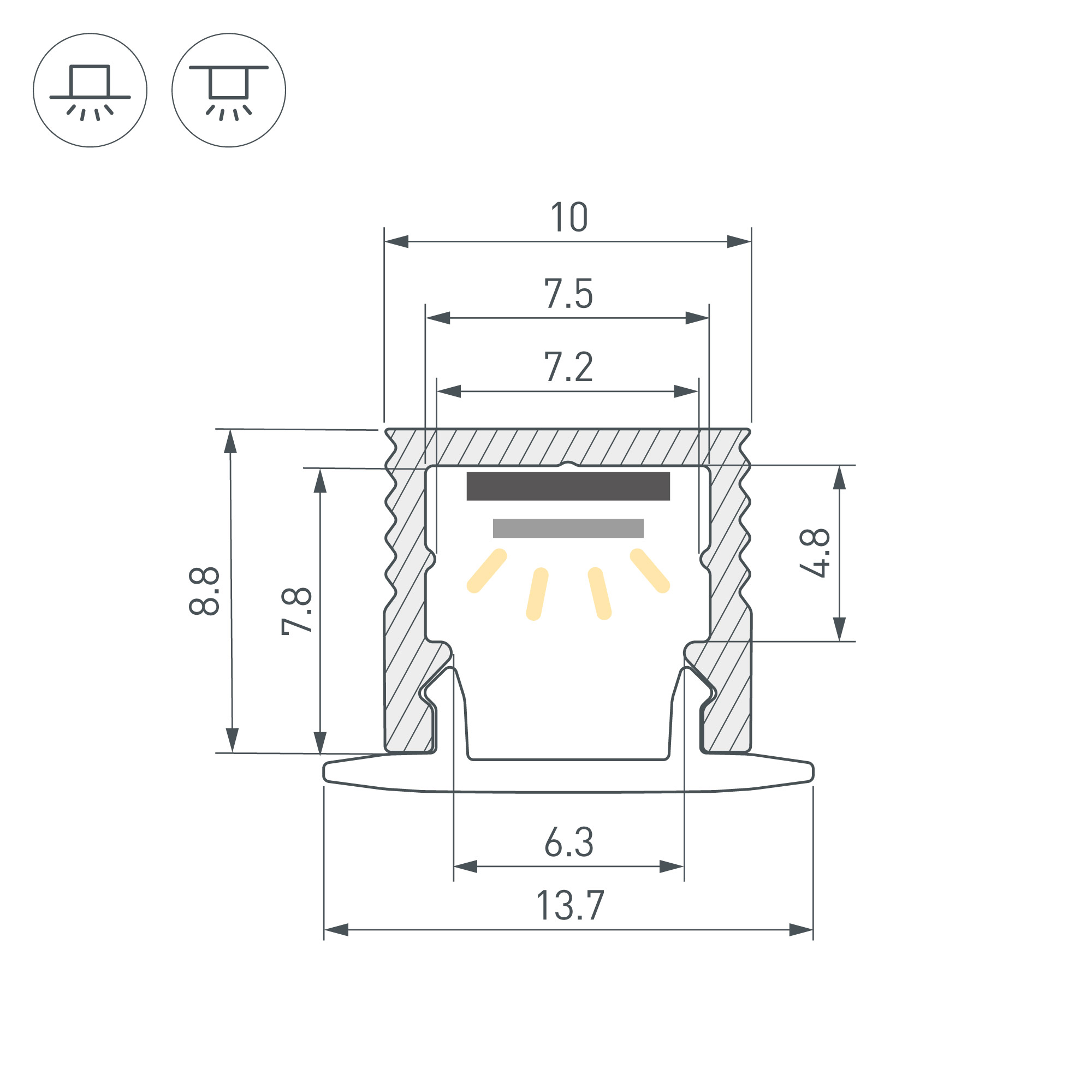 Алюминиевый анодированный микропрофиль для светодиодных лент и линеек. В зависимости от выбранного экрана профиль можно как установить на поверхность, так и встроить в неё. Габаритные размеры (L×W×H): 2000x10x8,8 мм. Ширина площадки для ленты 7,5 мм. Экраны, заглушки и другие аксессуары приобретаются отдельно. Цена за 1 метр.