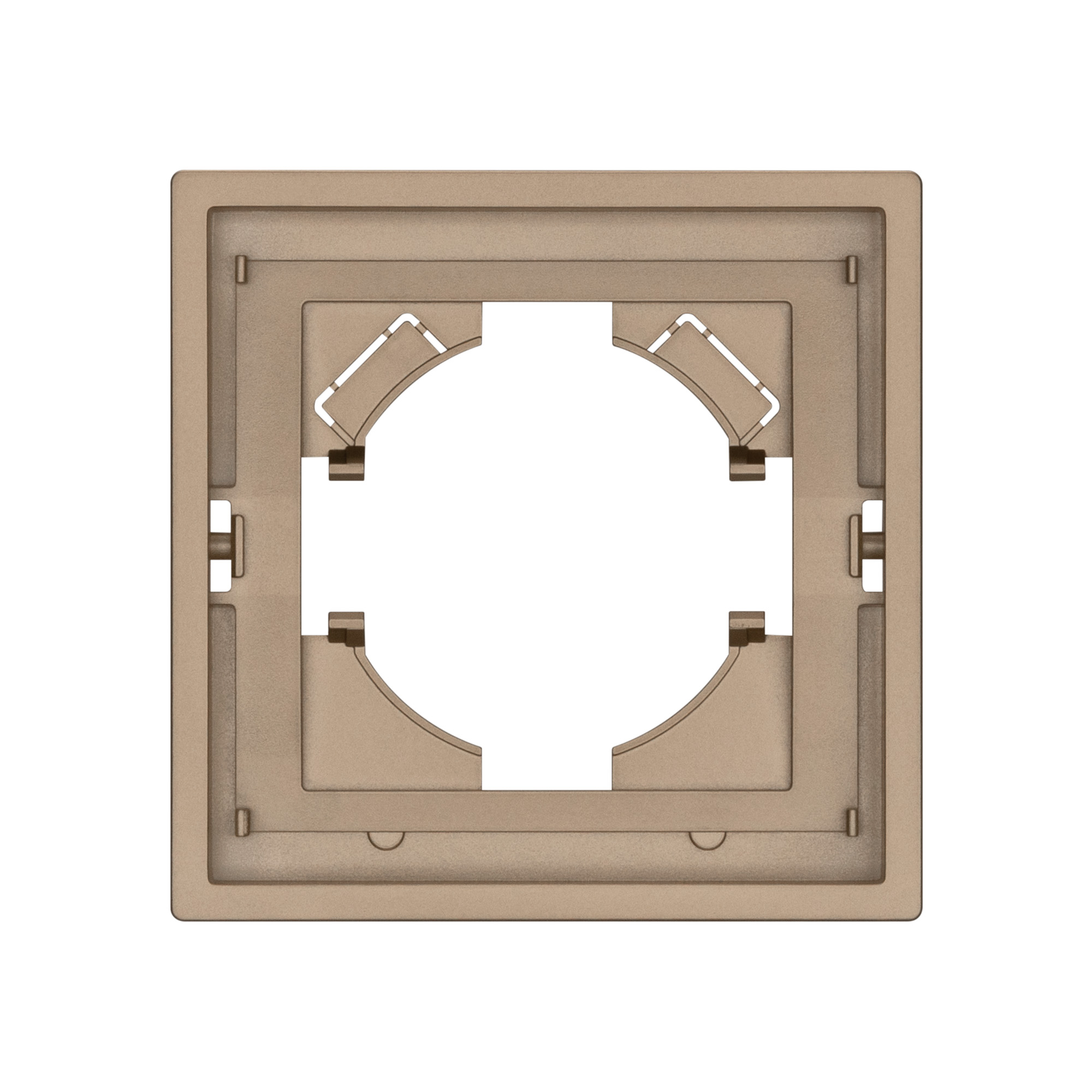 Корпус рамки выполнен в золотом цвете и имеет матовое покрытие, что придает изделию приятные тактильные свойства. Высота рамки составляет 9 мм, что позволяет эффективно интегрировать рамку в интерьерные решения любого уровня сложности.