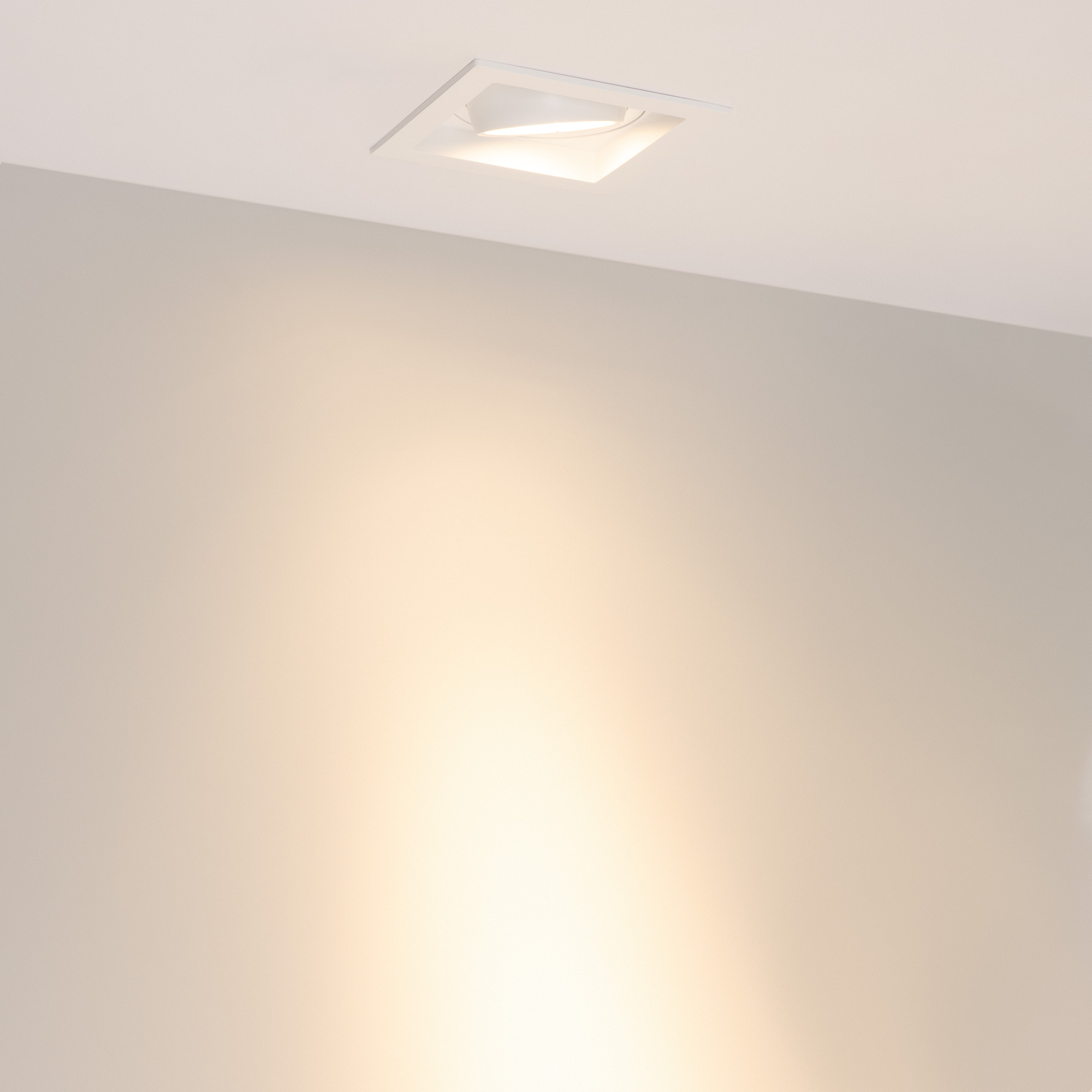 Встраиваемый карданный светильник. Мощность 20 Вт, св. поток 2067 лм, 103 лм/Вт, тёплый 3000 K, CRI>92, угол 20°, напряжение питания 230 В. Белый корпус из алюминия, белая вставка, степень защиты IP20. Размер: длина 117 мм, ширина 117 мм, высота 105 мм. Монтаж встраиваемый, установочное отверстие: длина 95 мм, ширина 95 мм. Драйвер 24-42 В, 500 мА, пульсация <2%.